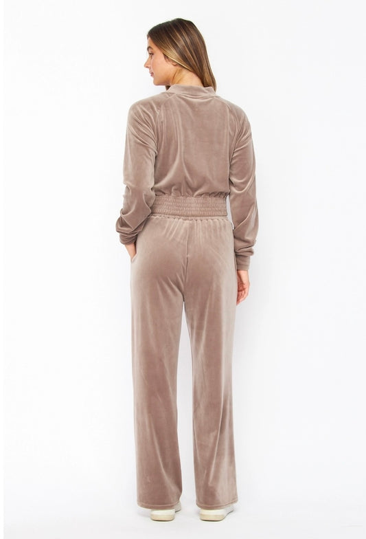 1227 Velour Zip Up Mock Neck Pant Set