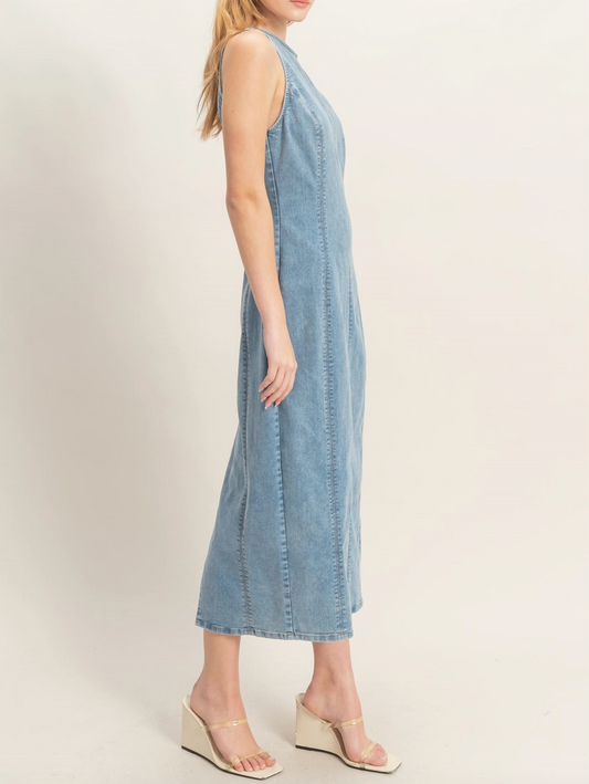 1935 Sleeveless Denim Midi Dress