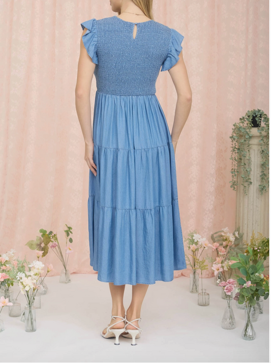 1930 Smocked Tiered Midi Dress