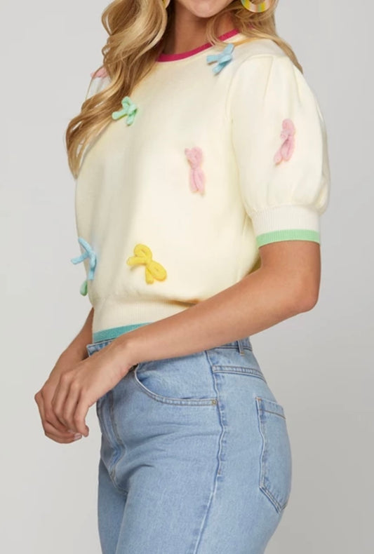 1636 Sweater Top W/ Bow Knot