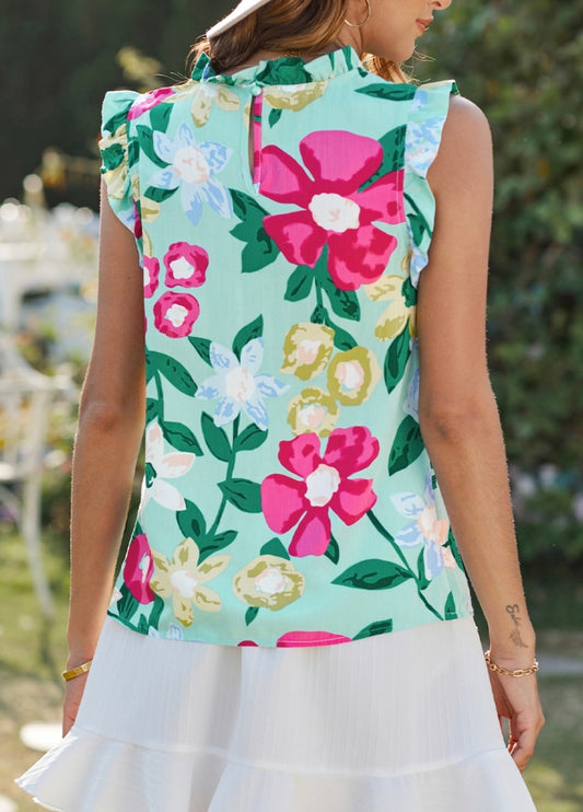 1424 Floral Print Ruffle Tank Top