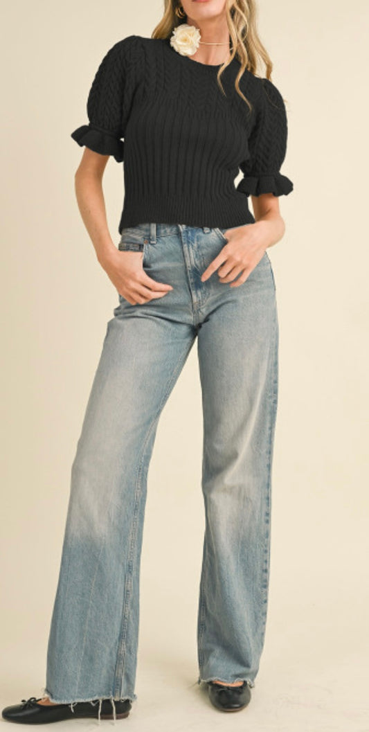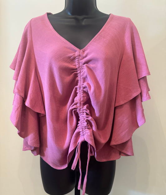 0467 Linen Ruffle Layered Sleeve Top Pi...